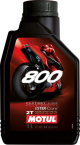 100% синтетическое моторное масло для 2-х тактных мотоциклов, разработанное в сотрудничестве с заводскимиспортивными командами: «Factory Team». Линейка 800 обладает преимуществами технологии ESTER Core®. Она позволяет получить максимальную мощность двигателя, обеспечить надежность и предотвратить износ. Применение эстерового базового масла в сочетании с инновационным пакетом присадок, даёт возможность получить масло с непревзойденными характеристиками для превосходной работы двигателя.